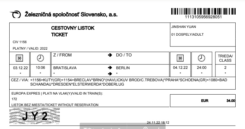 No, unfortunately I had a crazy month and travelled 4 times, however, I managed to book one train instead of flying, it was a direct train from Bratislava to Berlin, 8h, only 34 Euros. Here’s my ticket: